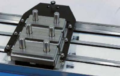 2、将试板放在工作盘内,用两端试板压脚将其固定。