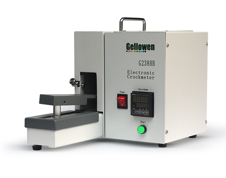 电动干湿摩擦色牢度测试仪用于检测棉、化纤、混纺等有色织物干/湿摩擦类色牢度的测试。该仪器适用于检测织物在干、湿状态下的摩擦色牢度,以及经常性和周期性测试。测试仪使试样在一定压力、一定行程内与白棉布反复摩擦规定的次数,经过将白棉布与沾色灰色样卡比对评定脱色等级,为改良织物染色提供依据。配有数字式电子预置计数器。