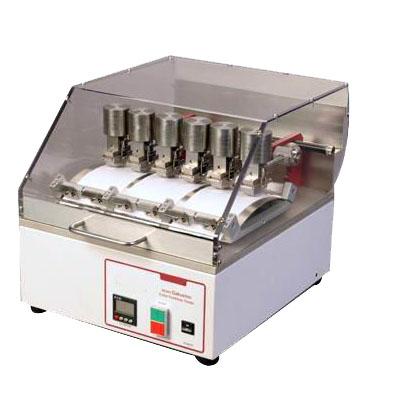 (1)试验原理:将试样分别用一块干摩擦布和湿摩擦布摩擦,用沾色用灰色样卡评定摩擦布的沾色。,
