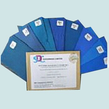 符合GB/T 8427-2008,ISO105-B:1994蓝色羊毛标准,其编号为1-8。编号越大,其颜色在曝晒中,越不容易变色,即耐光色牢度等级越高。且每个编号颜色为不同的蓝色。