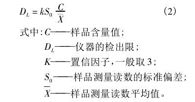 (3)样品检出限: 指相对于空白可检测的样品的最小含量。它定义为三倍空白标准偏差,即3σ空白( 或3S空白)。